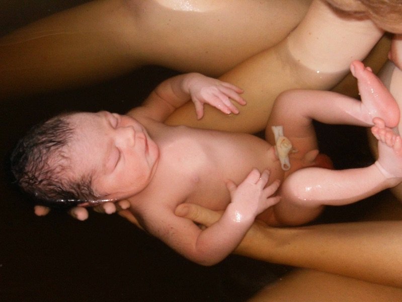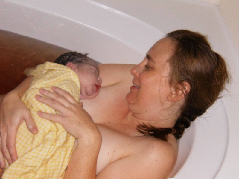 I was 38 weeks pregnant and had been having pre-labor contractions for many weeks. It was a Thursday evening when my water broke. Kellie and our doula, Myra came over at 9:00 that night. Nothing was happening so we all went to bed and Kellie and Myra slept on our couch! The next morning the contractions were mild and far apart so everyone went home. It wasn’t until about 9:00 that night that the contractions started coming more regularly and getting more uncomfortable. My daughter Gabby came in and held my hand during the contractions while I breathed them out. She headed to bed and I fell asleep. During the contractions I came to a little and breathed through them.